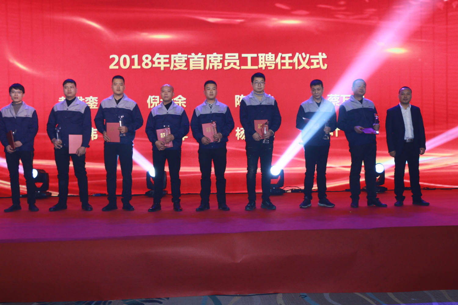 晚會對年度優(yōu)秀供應(yīng)商、優(yōu)秀員工、優(yōu)秀共產(chǎn)黨員和銷售冠軍進行了表彰;聘任了2018年度15位員工為”首席員工”并頒發(fā)證書;首席員工代表徐崇燦 ,優(yōu)秀員工代表胡廣兵做了典型發(fā)言。